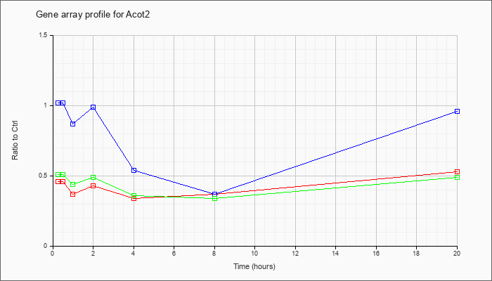 | Acot2 | acyl-CoA thioesterase 2 (Acot2), nuclear gene encoding mitochondrial protein, mRNA [NM_134188] | KLA | 1.05 | .90 | .70 | .68 | .66 | .63 | .61 | |