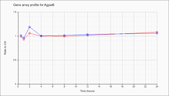 | Agpat6 | 1-acylglycerol-3-phosphate O-acyltransferase 6 (lysophosphatidic acid acyltransferase, zeta) (Agpat6), mRNA [NM_018743] | KLA | .90 | .91 | .88 | .85 | .83 | .97 | 1.01 | |