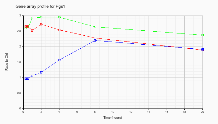 | Pgs1 | phosphatidylglycerophosphate synthase 1 (Pgs1), mRNA [NM_133757] | KLA | .91 | 1.20 | 1.75 | 2.66 | 2.22 | 2.07 | 1.89 | |